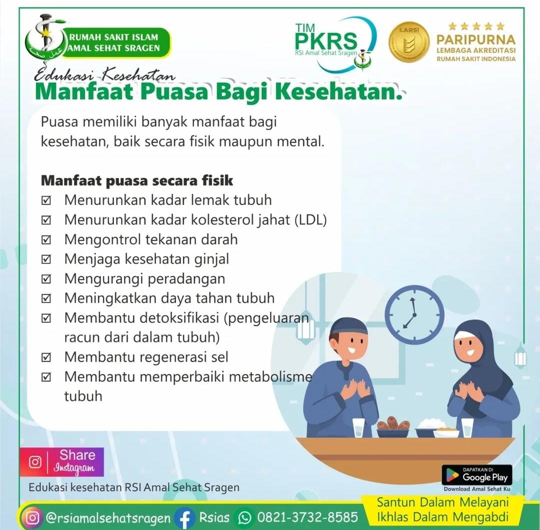 Namun, penting untuk berkonsultasi dengan tenaga medis sebelum memulai puasa, terutama bagi mereka yang memiliki kondisi kesehatan tertentu, agar puasa dilakukan dengan cara yang aman dan sesuai dengan kebutuhan tubuh.