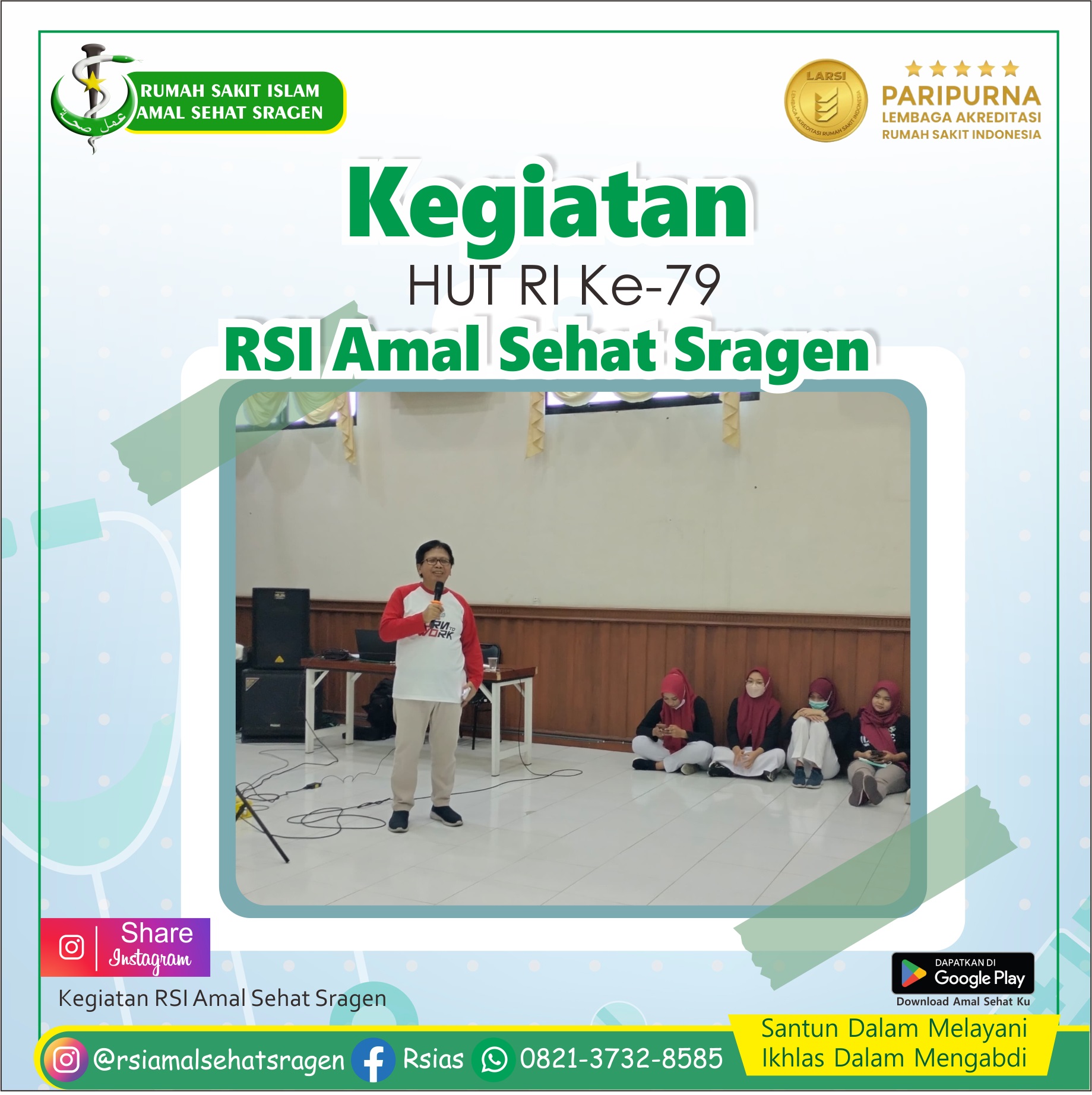 Dalam rangka memperingati Hari Ulang Tahun Republik Indonesia (HUT RI) yang ke-79, RSI Amal Sehat Sragen menggelar berbagai kegiatan seru pada tanggal 14 Agustus 2024. Perayaan tersebut dimulai sejak pukul 07.00 WIB dan berlangsung hingga selesai, membawa semangat kemerdekaan dan kebersamaan kepada seluruh peserta.