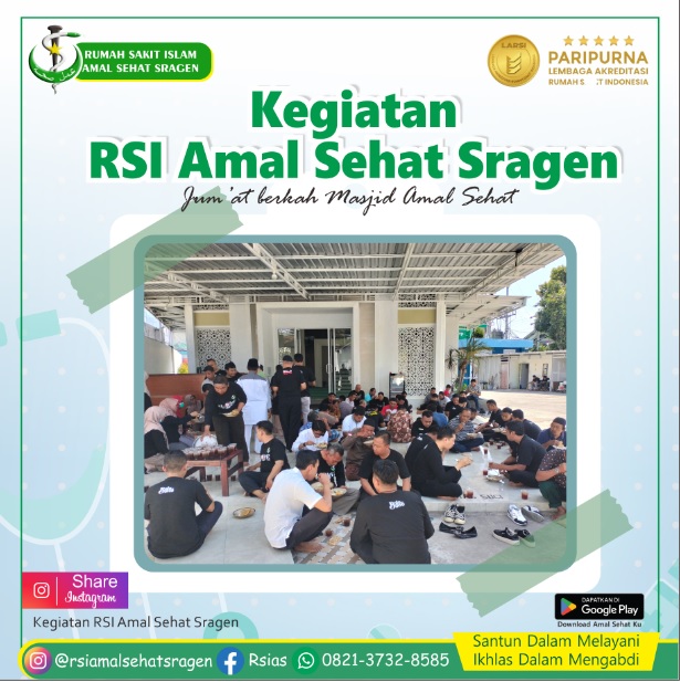 Pada Jumat, 9 Agustus 2024, serambi Masjid RS Islam Amal Sehat Sragen menjadi saksi kegiatan Jumat Berkah yang kembali digelar dengan penuh khidmat. Kegiatan ini merupakan rutinitas yang dilaksanakan setiap Jumat pertama di awal bulan, hasil kerja sama antara takmir Masjid RS Islam Amal Sehat dan Amal Sehat Peduli.